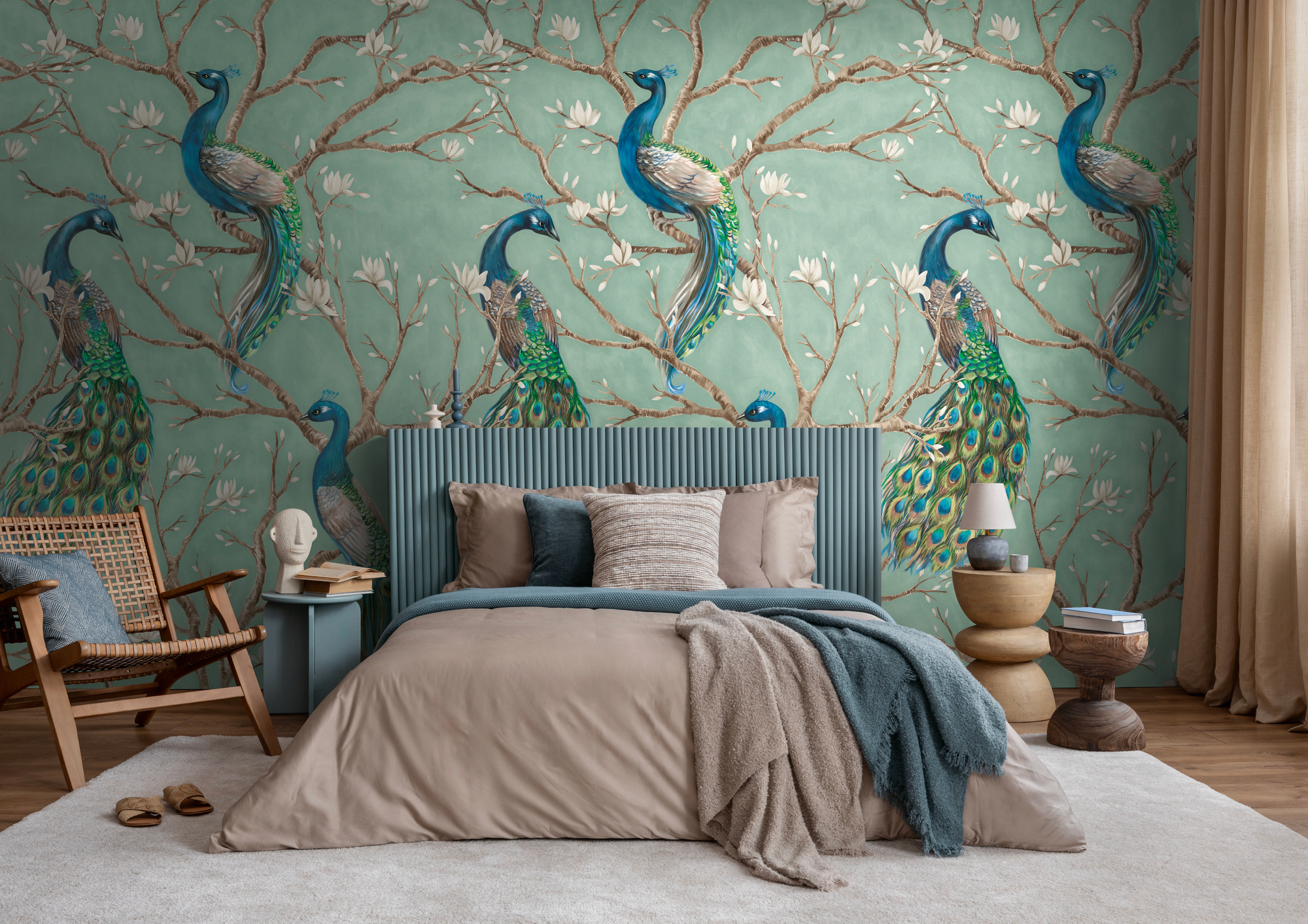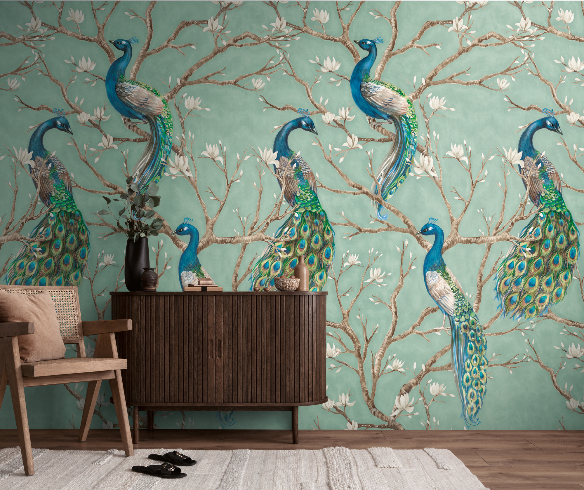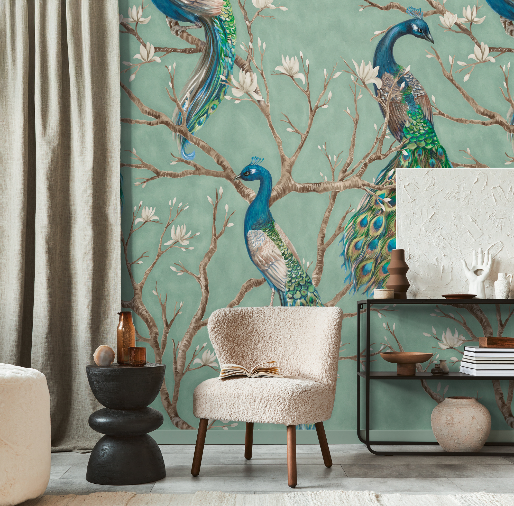 -79223-9 Панно AS Creation 159*280, Павлины в цветущем саду
